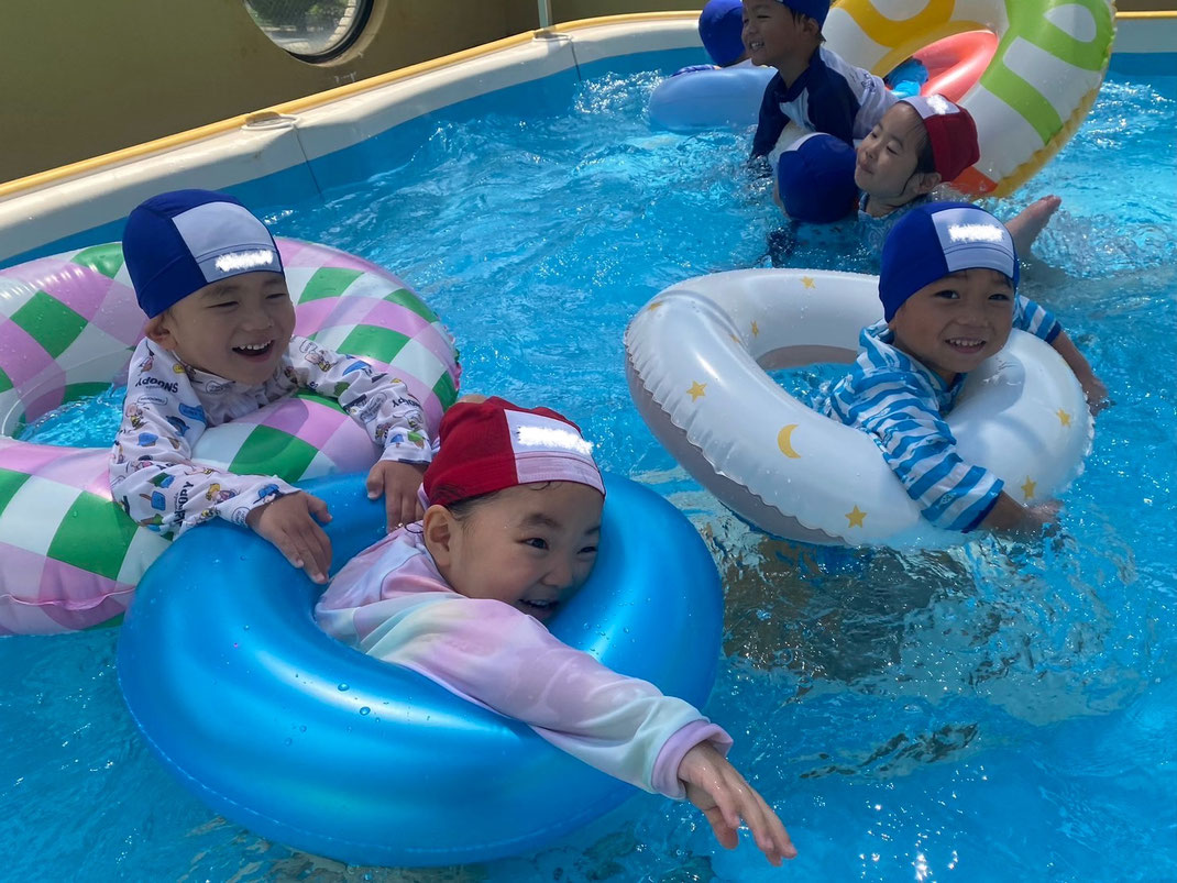 すみれ組になり、滑り台付きの大きなプールに入れるようになって大喜びの子ども達。遊びの中で友達と言葉のやり取りを交えながら毎日仲良く遊ぶ姿が見られます。これからも様々な遊びを通して友達との関りや言葉でのやり取りを楽しんでいきたいです(*^^)v